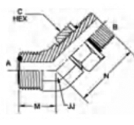 | PART NO SIZE | TUBE O.D. | A THREAD | B THREAD | A DRILL | B DRILL | M LGTH | N LGTH | C HEX | JJ FLATS |